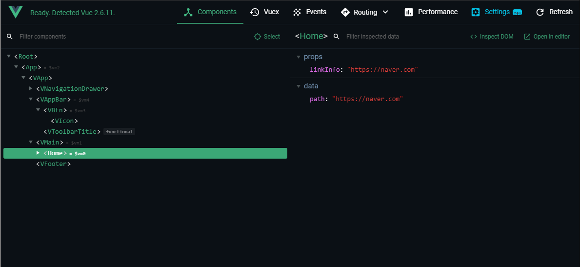vue-devtools를 통해서도 확인해보면 아래와 같이 props가 잘 전달되는 것을 알 수 있다.